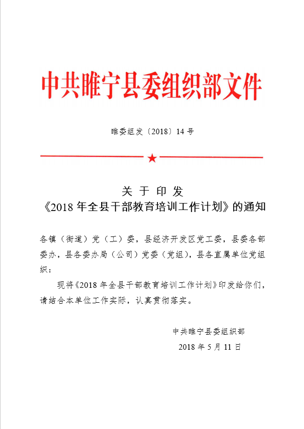 为切实做好2018年全县干部教育培训工作,提高干部教育培训科学化水平,建设一支政治素养高、业务能力强的专业化干部队伍,结合我县干部教育培训工作实际,制定本计划。